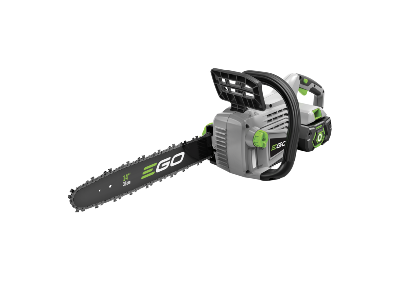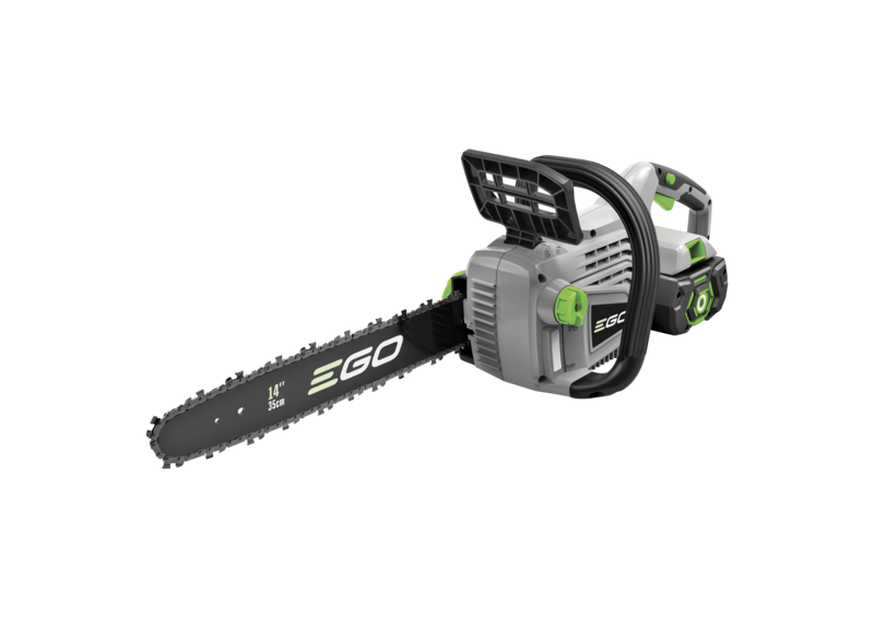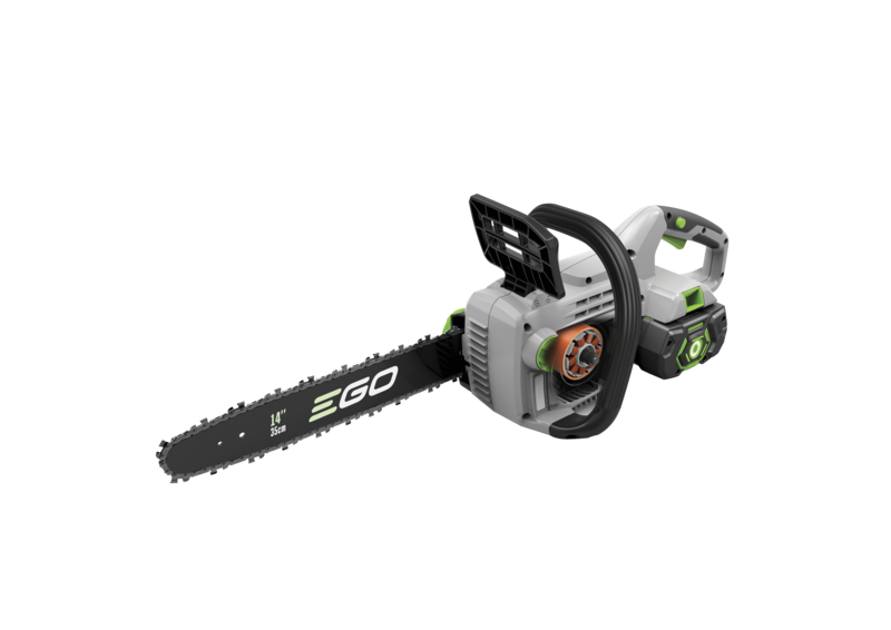 Provided with a 2.5ah battery and standard charger, the CS1401E cordless chainsaw kit is perfect to get started with our EGO Power+ cordless garden tools. This tool is ideal for cutting up branches and medium sized logs up to 35cm in your garden, providing petrol matching power in each cut. With the 2.5ah battery provided, the product weighs just 5kg, and will provide up to 130 cuts at a chain speed of 13.5 m/s from a fully charged battery. The standard charger will recharge the battery in 50 minutes, and you can use the battery in any other EGO Power+ product, making it versatile and environmentally friendly. Our tool-free tensioning system means it’s now quicker and easier to attend to the chain, and the auto-lubricating 150ml oil reservoir means looking after your chains health is simpler along with easy to check oil levels through the opaque inspection window