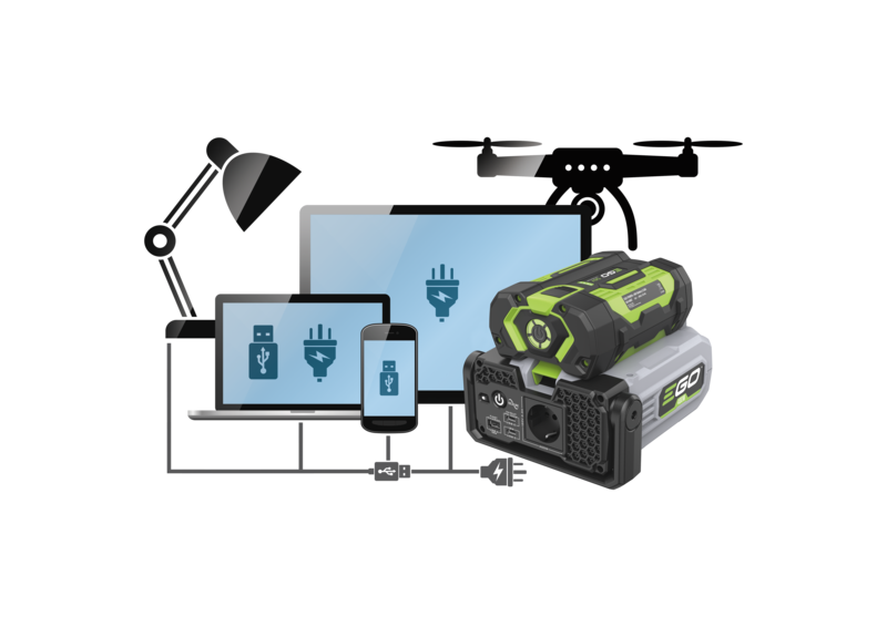 Compatible with any EGO ARC Lithium™ battery, the Nexus Escape provides power when and wherever you need it. Built with a powerful 220-240V AC outlet and three USB ports, the Nexus Escape boasts flexible power to charge mobile phones, laptops, cameras, lights, and other electrical devices up to a combined maximum output of 500 Watts. Ideal for camping trips, beach visits, festivals or for use at home, the Nexus Escape is light weight and small enough to carry in a rucksack or store in a tent.