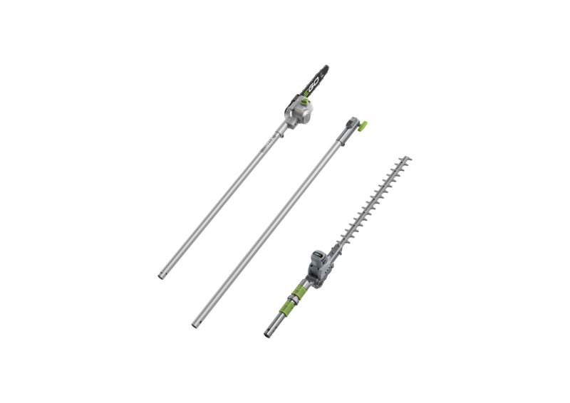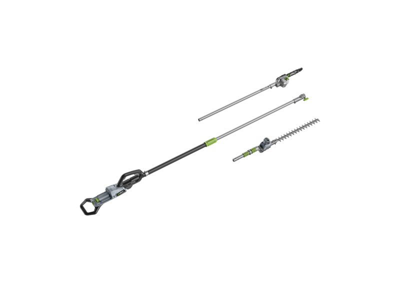 Welcome to the EGO Power+ Pro X telescopic pole system, where you can enjoy maximum reach, manoeuvrability and cutting power for high branches and hedges. This system removes the risk involved when using platforms and ladders to work on hard to reach areas, and has an interchangeable head to switch between the PSX2500 pruning saw attachment and PTX5100 hedge trimmer attachment. Depending on which attachment, the total length of extension can reach up to 4m, but the tool is equally as useful when fully contracted to tackle low hedges and branches. When fully extended the tool meets the maximum allowable lengths, with great balance, articulation and ergonomics.With the pruning saw attached, you can enjoy 22m/s chain speed and 25cm bar length. The hedge trimmer attachment allows you to cut in 6-adjustable angles, plus an additional twist rotation means you can achieve the finish you desire. Backed up by our powerful brushless motor, power, torque and cutting speed is delivered to allow you to cut branches up to 26mm in diameter with ease.