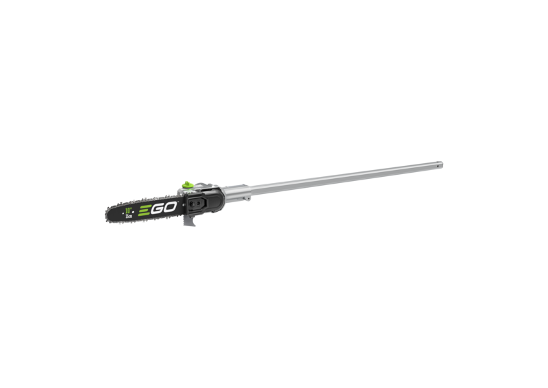 The EGO telescopic system enables you to work safer, without the use of ladders or platforms. The pruning saw attachment with telescopic adjustment gives you a longer reach for cutting high branches up to 200mm in diameter. Bumper spikes give you extra control when cutting, and the fast 22m/s chain speed will cut through thick branches with ease. Backed up by our powerful brushless motor, you can be sure you'll receive maximum power and run time. At 2.2kg without the battery attached, the tool is lightweight but balanced when the battery is attached. It's also compatible with the Pro X harness, so you're able to take the weight off your arms if necessary. For use with the EGO Power+ Pro X Telescopic Pole (purchased separately).